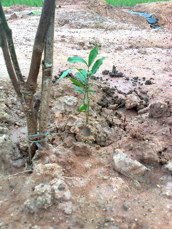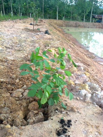 1 กันยายน 2555 หลังจากฝนเริ่มตกติดต่อกันนานพอสมควร ก็ได้ฤกษ์ปลูกต้นไม้เสริมอาทิเช่น กระท้อน มะม่วง มะพร้าว ผักหวานป่า ต้นไม้สารพัดอย่างละต้นสองต้นพอเป็นกษัย