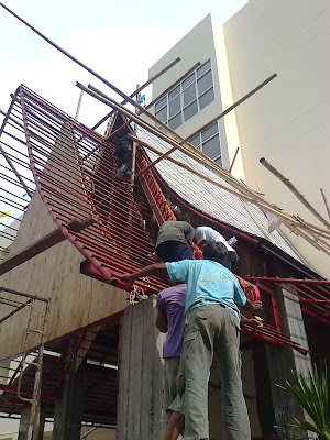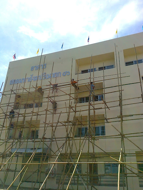 สร้างนั่งร้านเพื่อทาสีอาคารและติดชื่ออาคารสกลมหาสังฆปรินายก ๑๖ |